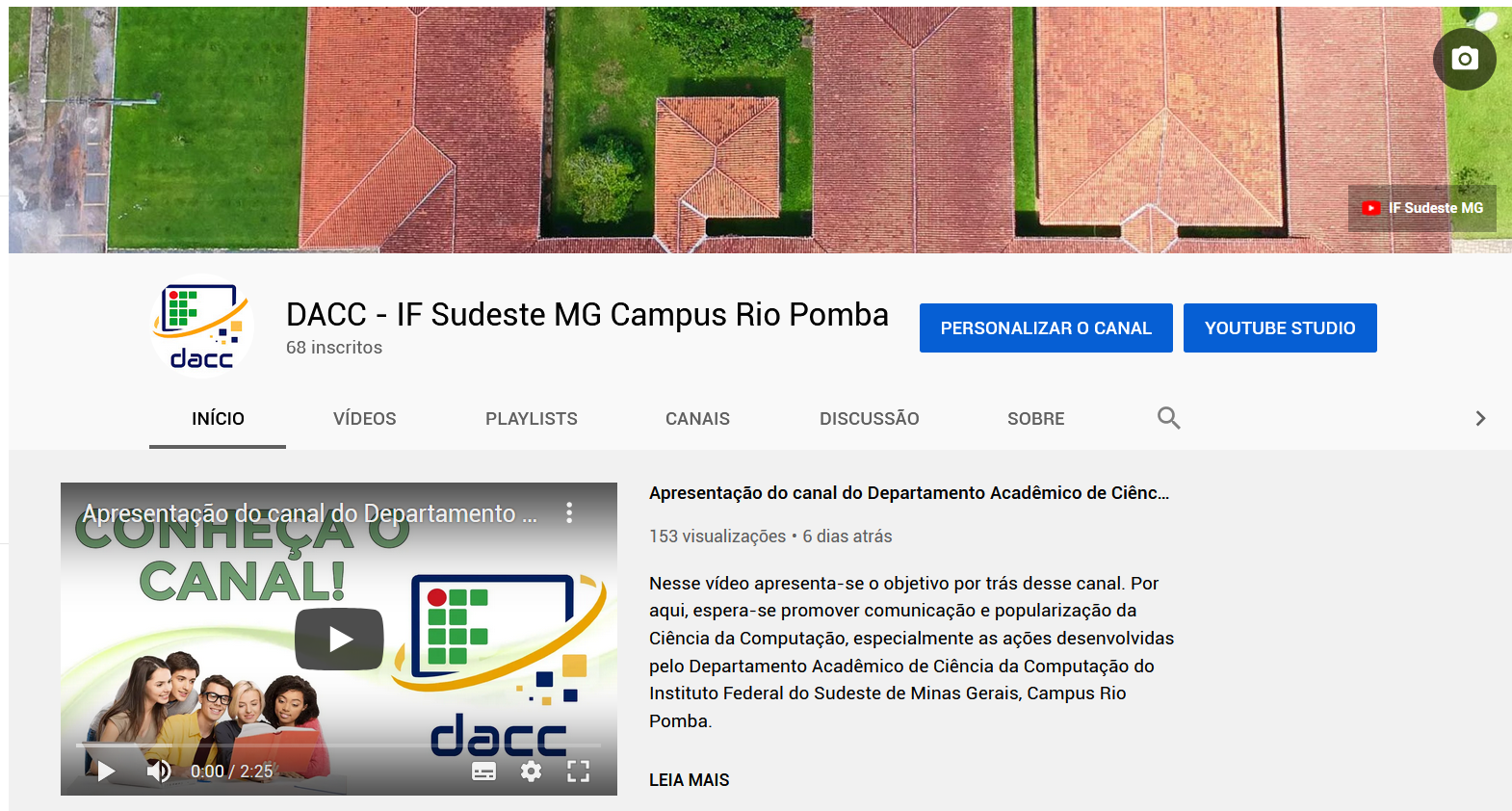 Recentemente o Departamento Acadêmico de Ciência da Computação lançou seu canal oficial no YouTube, já viu? No vídeo abaixo, há uma descrição do que será apresentado nesse canal...
